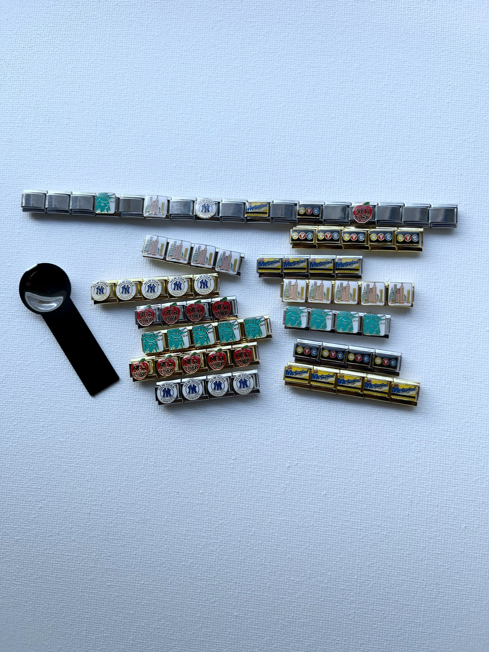 1 bracelet has 18 pieces which is the standard size, you can adjust to your size by reducing or adding more charms. Tool is included with a bracelet one per order, extras may be purchased separately.