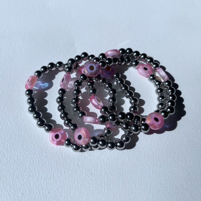 Stretch bracelets with stainless steel & glass beads.... Standard sizing available in 16' 17' 18' inches...